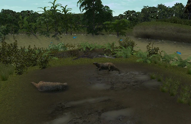 The Western Sandbank is similar to the Eastern Sandbank, though a slightly different array of creatures appear here. Resident caimans still patrol the waters to the north and south of the local small island. Going ashore here greets the player with more spectacled caimans (which are not dangerous on land). In the wide, relatively-shallow area to the west, there is a large group of giant otters.