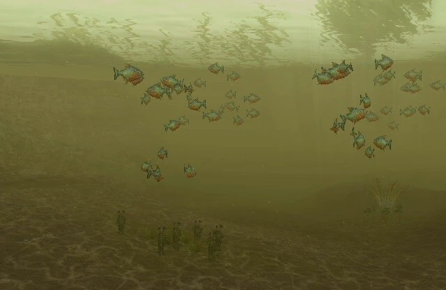 This section of the river, ranging from coordinates C3 to D3, contains dense shoals of red piranhas. They are mainly a passive fish, though they are able to attack, acting similarly to luna lionfish. They can be easily distracted if the player drops pellets of food for the fish as they swim through the area.